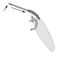Continue pulling until the rudder will not go up any further. Rest the handle